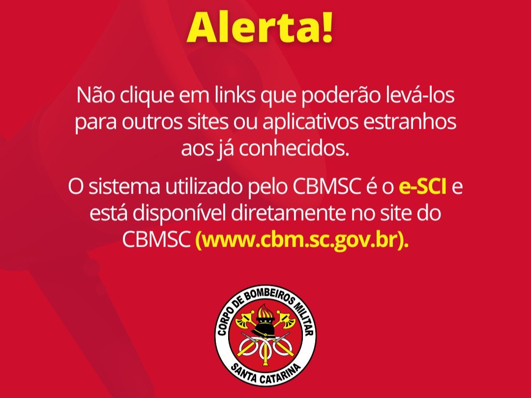 O Corpo de Bombeiros Militar de Santa Catarina (CBMSC) alerta os usuários do sistema e-SCI sobre tentativas de envio de mensagens fraudulentas (spams) que se passam por comunicações oficiais. Esses e-mails têm como objetivo enganar os destinatários, utilizando indevidamente o nome e a credibilidade do CBMSC.