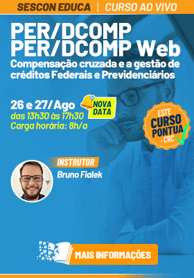 Pensando em atender essa demanda, o Sescon Educa irá realizar, nos dias 26 e 27 de agosto, o curso “PER/DCOMP, PER/DCOMP Web – Compensação cruzada e a gestão de créditos Federais e Previdenciários”.