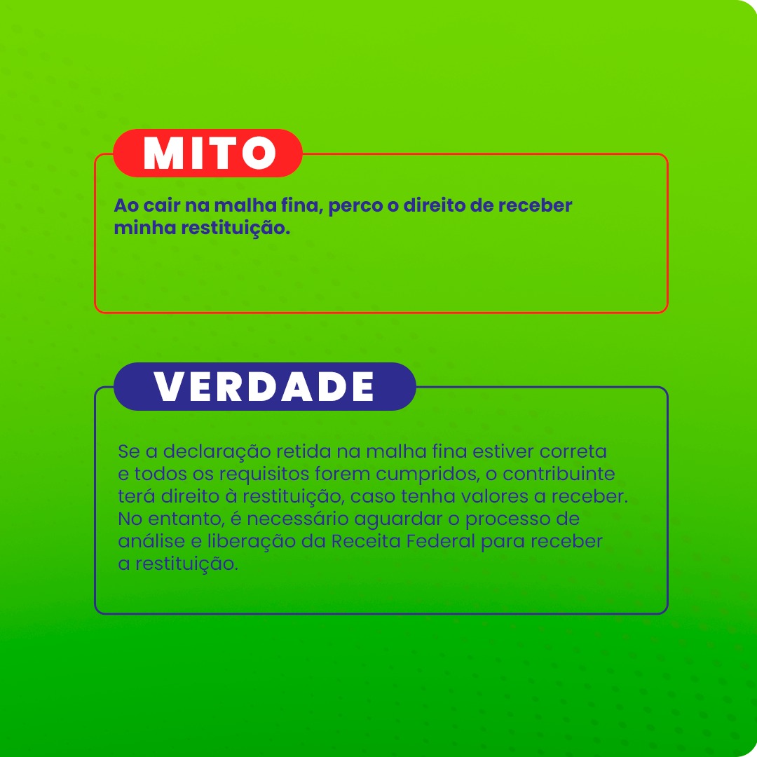 Após o final do prazo regular de entrega da declaração do Imposto de Renda, surgem muitos questionamentos a respeito da Malha Fiscal (malha fina). A Receita Federal preparou um “Mitos e Verdades” para esclarecer.