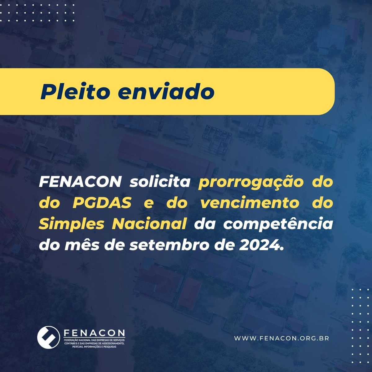 Pleito enviado! FENACON solicita prorrogação do PGDAS e do vencimento do Simples Nacional da competência do mês de setembro de 2024